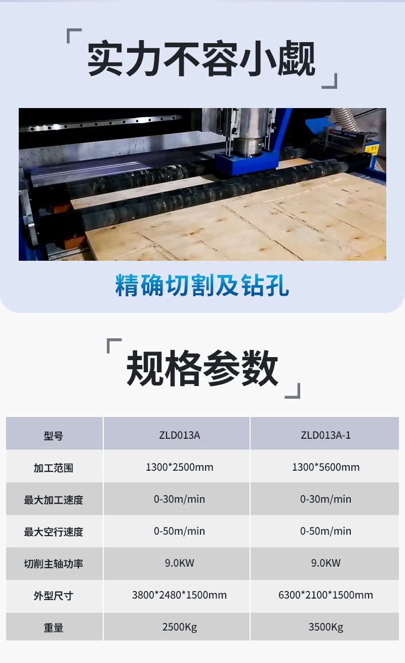 1.數(shù)控裁板機(jī)又名雕刻機(jī),可實(shí)現(xiàn)對(duì)板材的切割和鉆孔,自帶保護(hù)裝置,吊運(yùn)安裝方便。